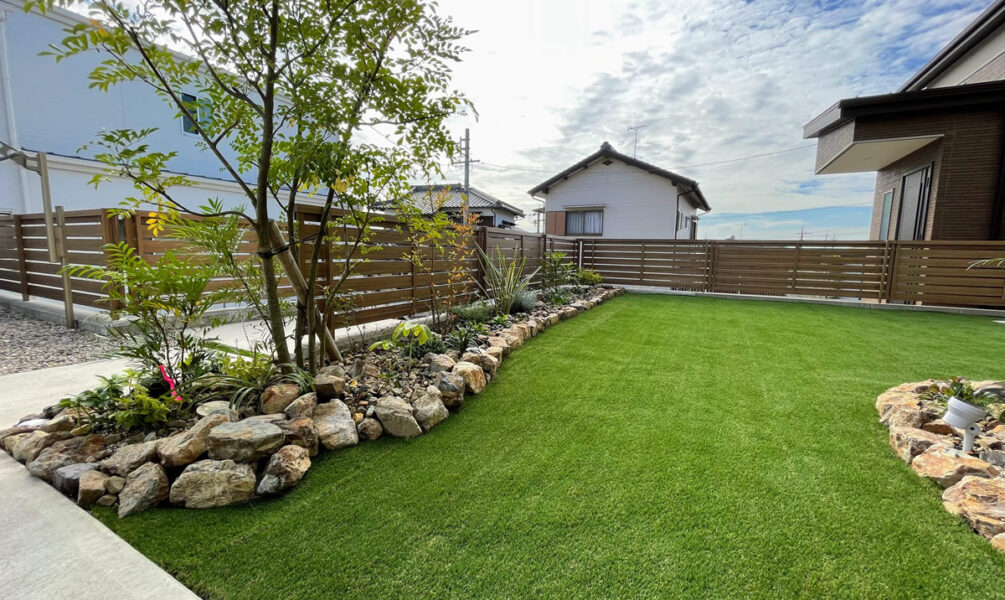 エクステリア空間にナチュラル素材を上手く溶け込ませる外構もありです。